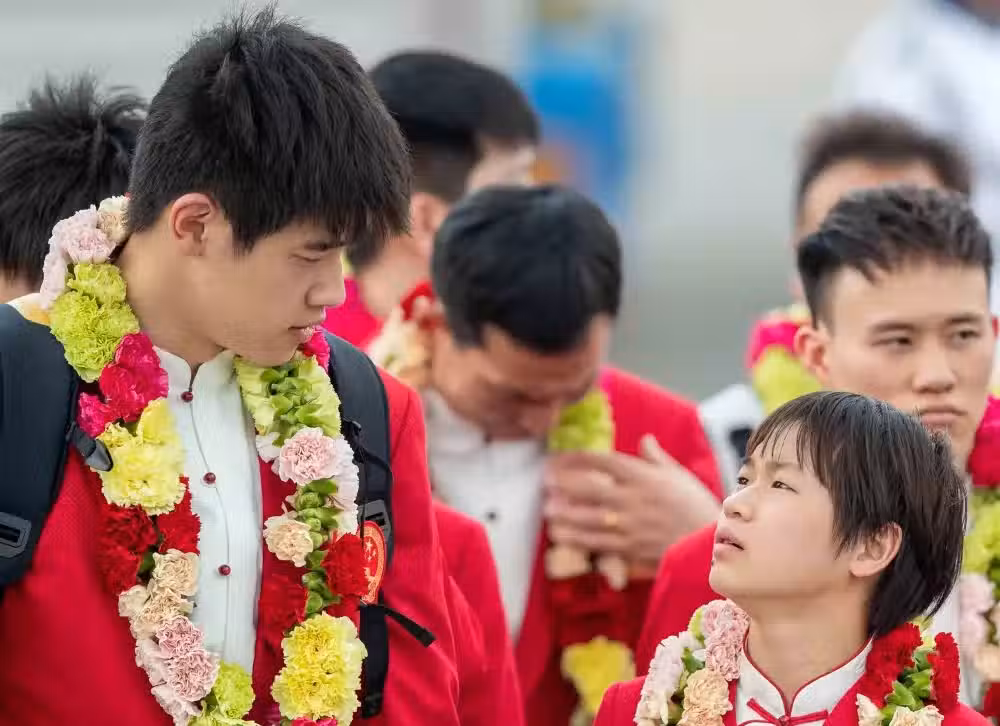 奧運冠軍們在8月29日上午抵達香港。機場舉辦了一個歡迎儀式,全紅嬋站在了潘展樂和馬龍中間。潘展樂身高1米92,全紅嬋才1米5出頭。潘展樂和全紅嬋聊天的鏡頭被拍了下來。全紅嬋不得不仰起頭和潘展樂說話,而潘展樂則要低頭。兩人上演了一幕「最萌身高差」。