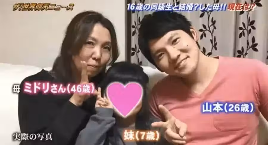 節目組找到了山本的母親,現年46歲。在她談起這段不倫婚姻的時候,眼睛泛起了淚光,表示很對不起山本。結婚5年之後,和年輕丈夫的思想有差異,分歧越來越大 ,無奈失婚收場。