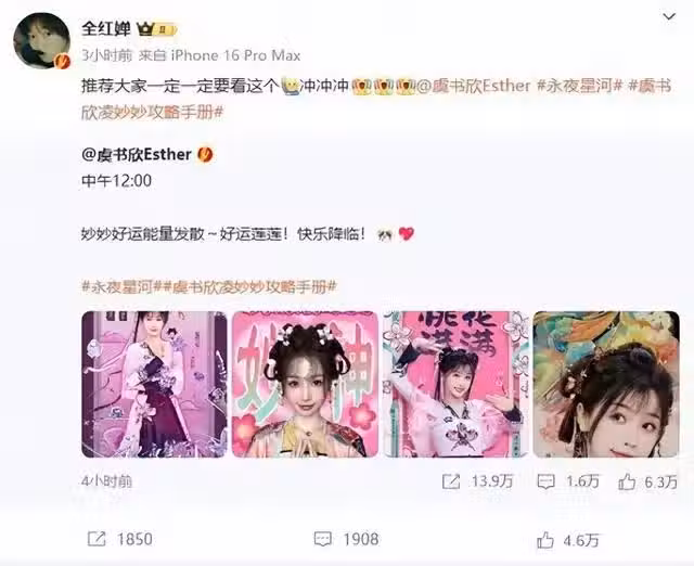 這不,奧運冠軍全紅嬋和演員虞書欣的一次跨界互動,就在網上悄悄掀起了一陣風浪。這事兒的開頭是全紅嬋在社交媒體上給虞書欣的新劇《永夜星河》打 call,專門為其發了條動態,可熱情了,寫著:「推薦大家一定一定要看這個!沖沖沖!」就這麼簡單一句話,卻引起網友們的熱議。