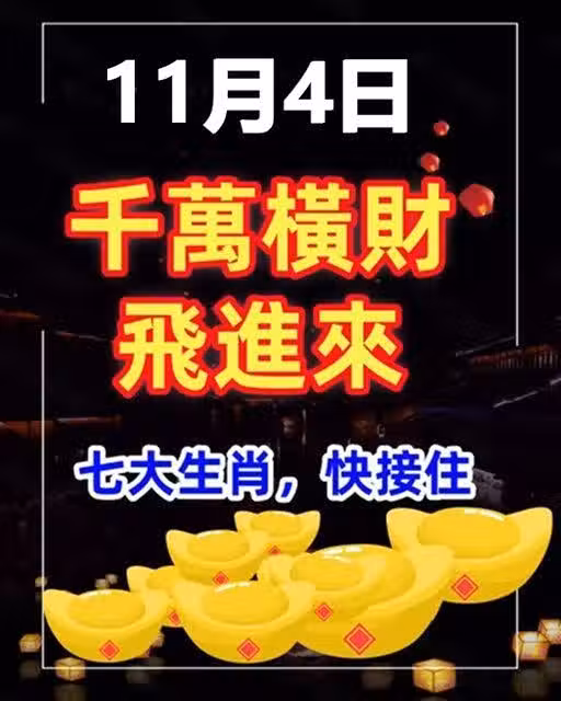 11月4日千萬橫財飛進來,七大生肖快接住 !