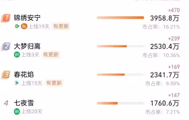 「最美學霸」陳都靈搭檔人氣小生侯明昊主演的《大夢歸離》,在上映後就迅速地引起關注,收視率直線飆升,目前已經飆升至「收視率第二」的位置了,僅次於任敏與張晚意的《錦繡安寧》。