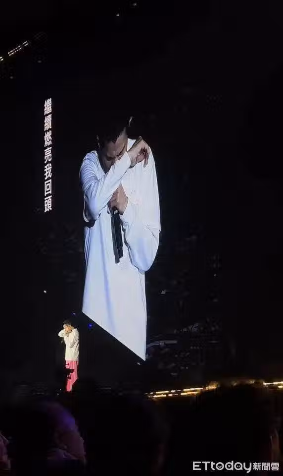 接著他說:「我希望你們看到我120歲,因為我想看到你們變老。」並接著繼續唱,但他還是按捺不住激動情緒頻頻拭淚,台下眾多「華嫂」