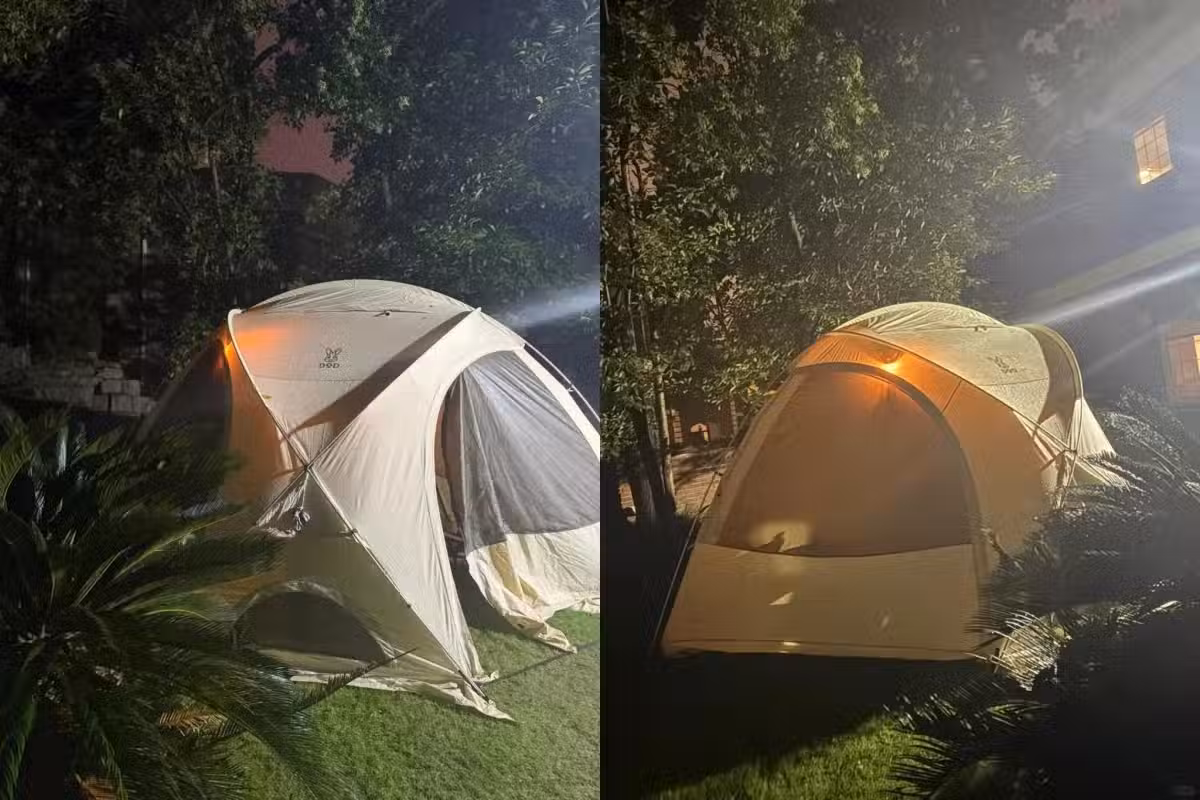 照片中所見,張馨月在超大花園上紮營,招呼好友到家中燒烤,整個花園綠草如茵,種滿大樹,營內放了個三層架放置大量和牛等美食,並有戶外桌椅及露營燈,十分愜意。