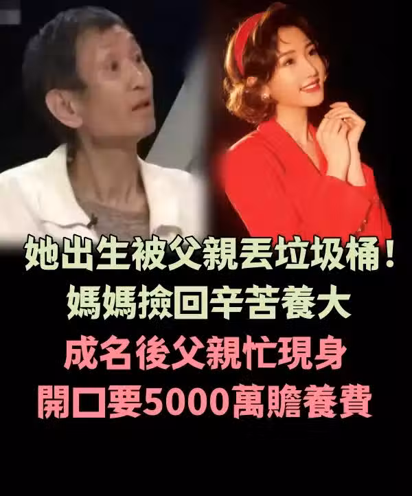 她出生被父親丟垃圾桶!媽媽撿回辛苦養大 成名後父親忙現身「開口要5000萬贍養費」