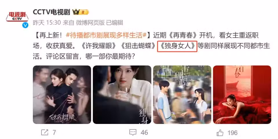 央視官宣!40集都市女性劇來襲,唐嫣領銜,真正的劇王來了