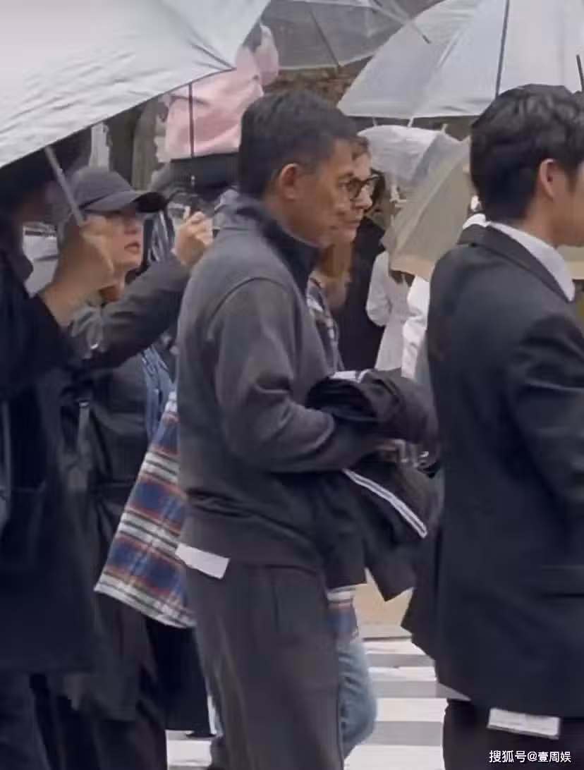 62歲梁朝偉在日本街頭被偶遇,5人為其撐傘排場足,網友:像首相出行