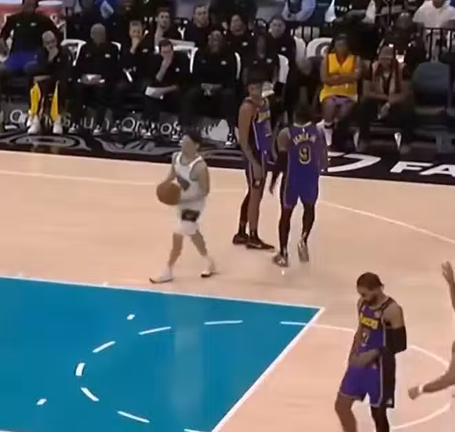 兩大頂流正面碰撞,拜布朗尼所賜,河村勇輝造成犯規站上罰球線兩罰全中,終於在NBA正賽得分。