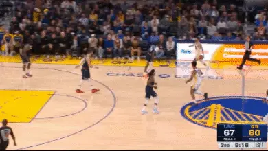 接著戴維斯的掩護,庫里行進中迎著祖巴茨完成拋投。