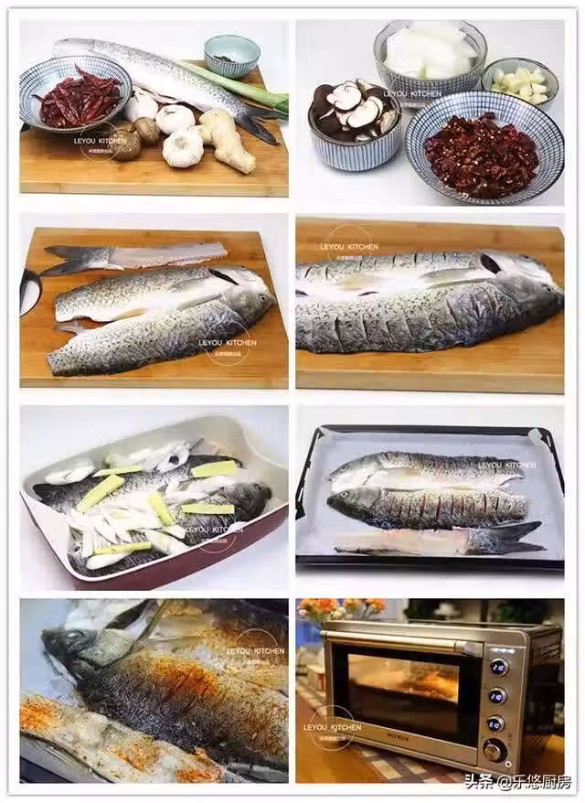 第六步:魚肉腌好後取出,瀝干水分。然後放到鋪有烤紙的烤盤中,如圖。接下來放到預熱好的烤箱,上下火210度烤15分鐘。(中間可以翻一次面。)