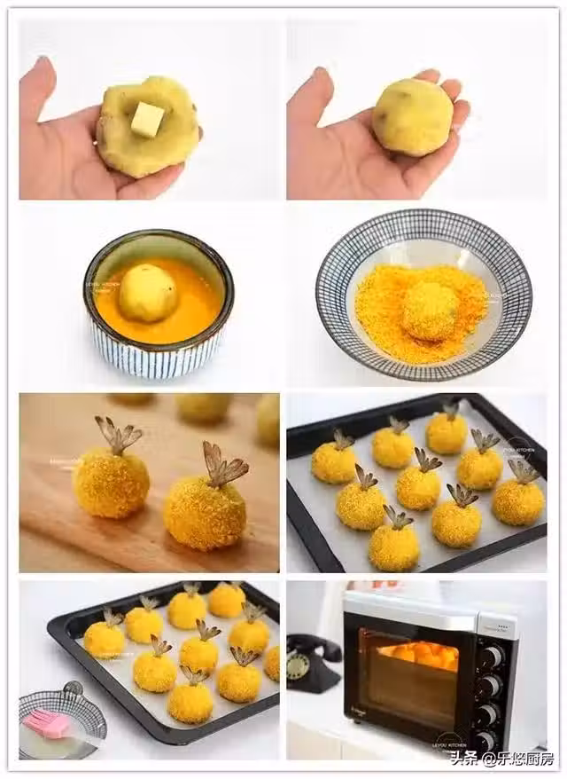第十二步:蘸好蛋液後,再放入麵包糠中,讓表面均勻的粘上一層麵包糠。