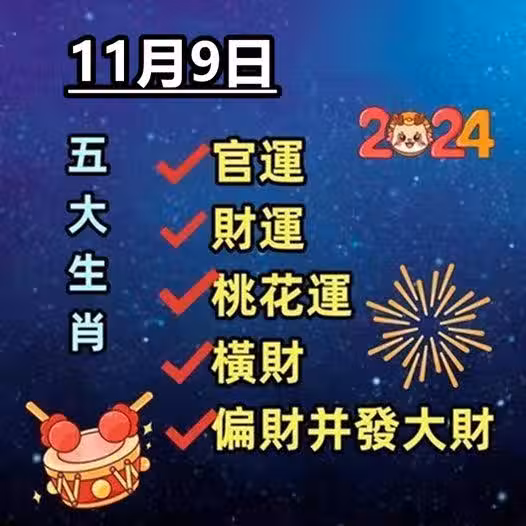 11月9日:官運 財運 桃花運 橫財 偏財並發大財的五生肖