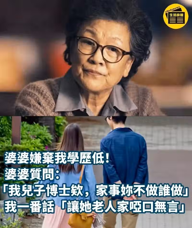老公是博士畢業,我卻只有大學畢業,婆婆一直嫌棄我的學歷低…最近她來家裡住,發現家事都是老公包辦,氣得大罵:「我兒子博士欸,家事你不做誰來做!」瞬間我就怒了… # 一番話讓婆婆啞口無言