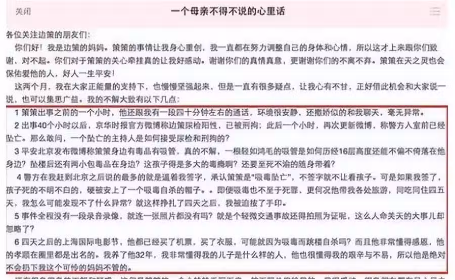 同情邊策的母親,可他觸及底線的行為讓人無法原諒。
