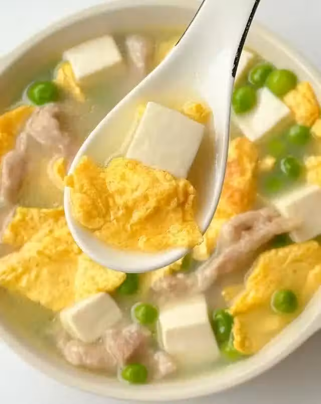 再放豬肉煮2分鐘加適量鹽調味即可,放入豆腐煮2分鐘~