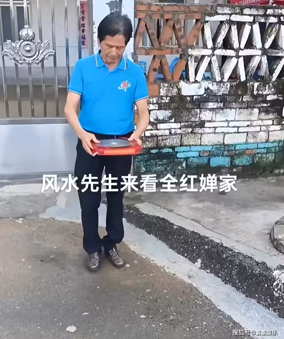 拿著羅盤到全紅嬋老家大門前左右比劃,也不知道他究竟看出個所以然沒有。