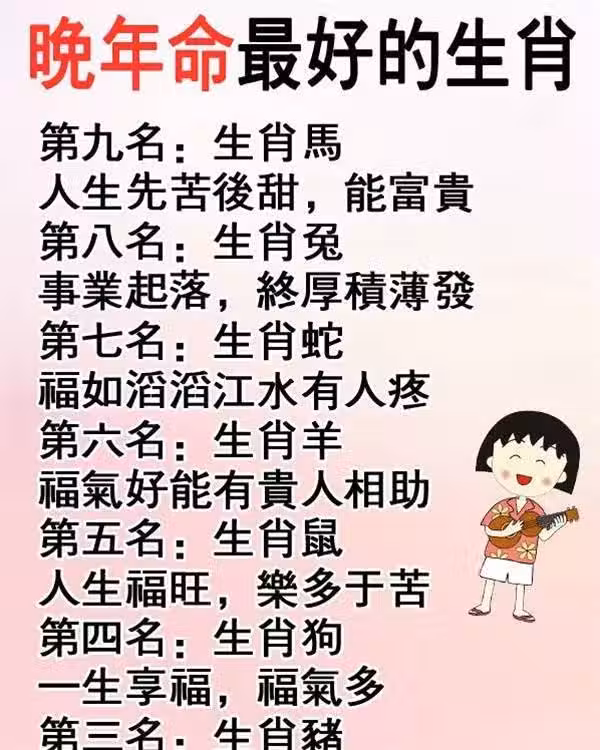 在傳統文化里,十二生肖承載著豐富的內涵和深邃的寓意,它們是人們認識自我、探索命運的重要工具。每個生肖都有自己獨特的性格特點和運勢走向,而在眾多生肖中,有些個肖被公認為是晚年最好命的。這些生肖的人年輕時或許歷經磨難,但到了晚年卻能享受到子女孝順、衣食無憂、不缺錢的幸福生活。那麼,究竟是什麼原因讓這些生肖的人在晚年如此好命呢?