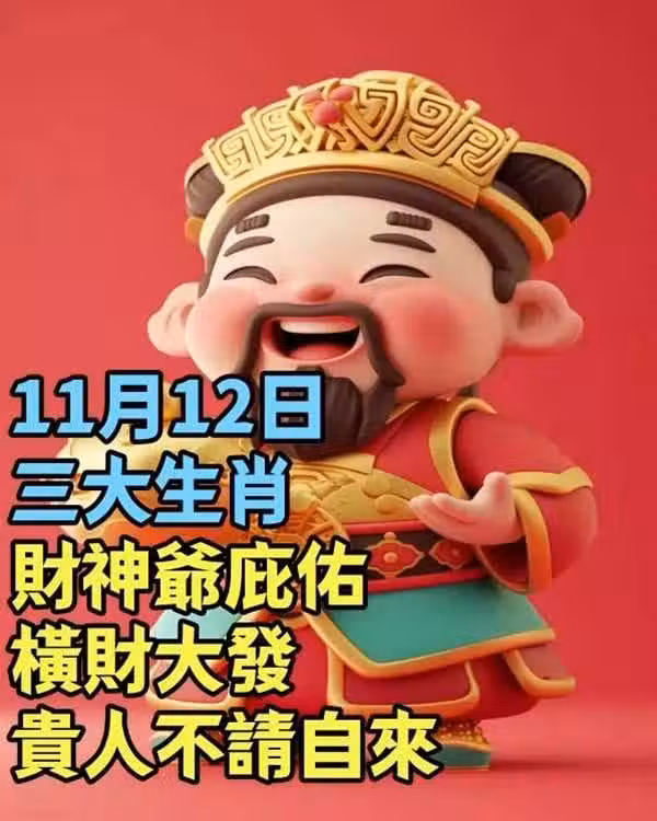 11月12日三大生肖,財神爺的庇佑,橫財大發,貴人不請自來!