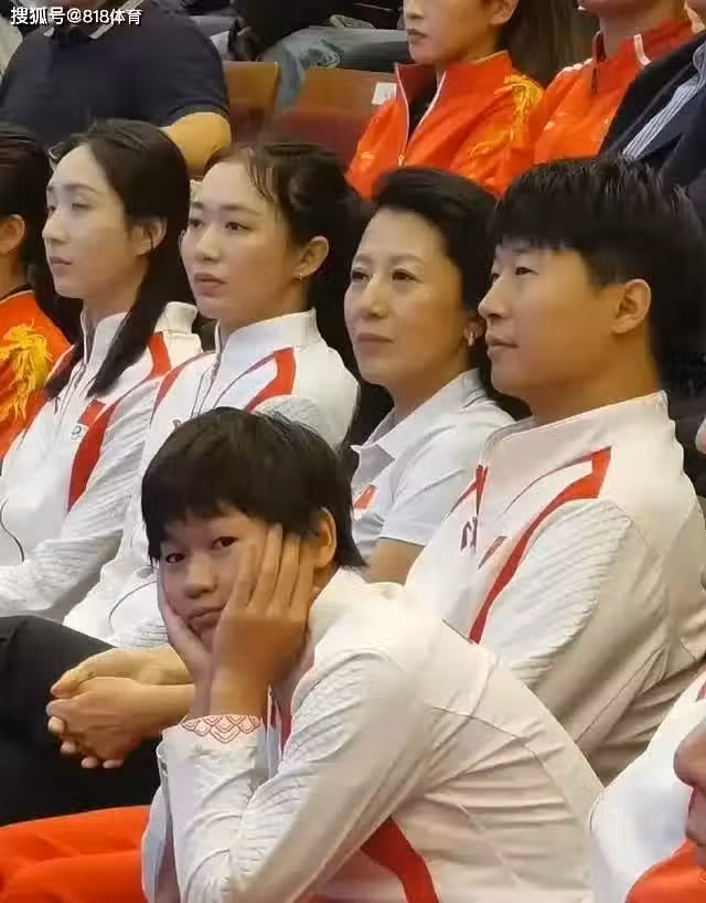 全紅嬋坐在百米飛人蘇炳添和國乒大滿貫得主陳夢中間,一襲白色奧運領獎服,略顯矜持。