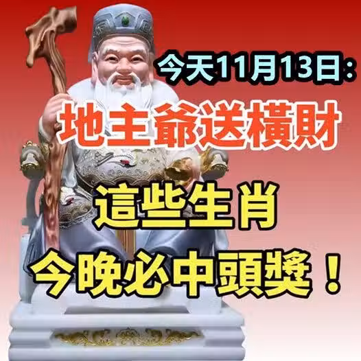 今天11月13日:地主爺送橫財,這些生肖今晚必中頭獎!