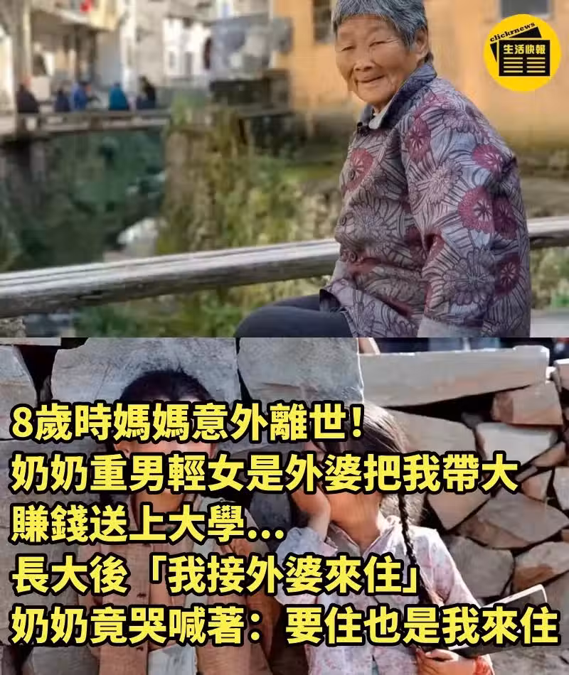 8歲時媽媽意外離世!奶奶重男輕女,「是外婆把我帶大」賺錢送上大學...長大後「我接外婆來住」奶奶竟哭喊著:要住也是我來住
