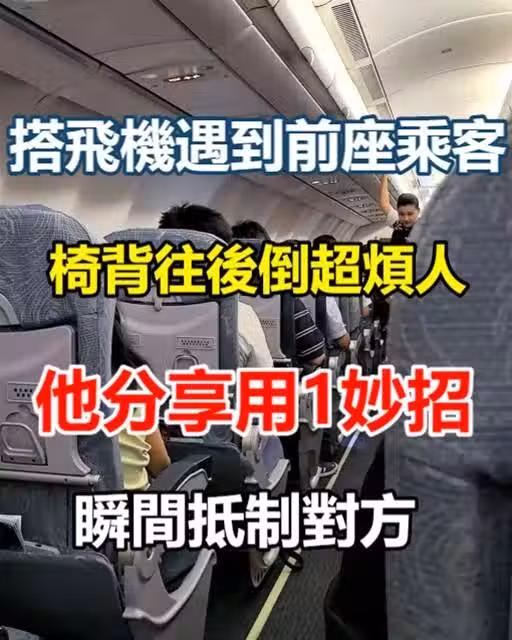 搭飛機遇到「前座乘客椅背往後倒」超煩人!他分享「用1妙招瞬間抵制對方」網友全贊翻:早知道多好~