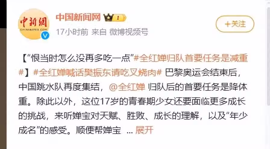 無緣冠軍一周,全紅嬋凌晨發文暴露真實現況,父親的擔心應驗了