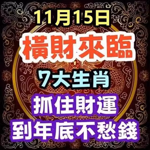 11月15日橫財來臨,7大生肖抓住財運,到年底不愁錢