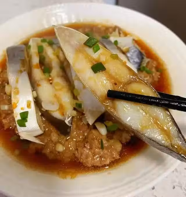 鯧魚乾用水沖一下,碼在肉餅上,放上薑絲~