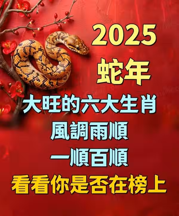 2025蛇年大旺的六大生肖,風調雨順,一順百順,看看你是否在榜上