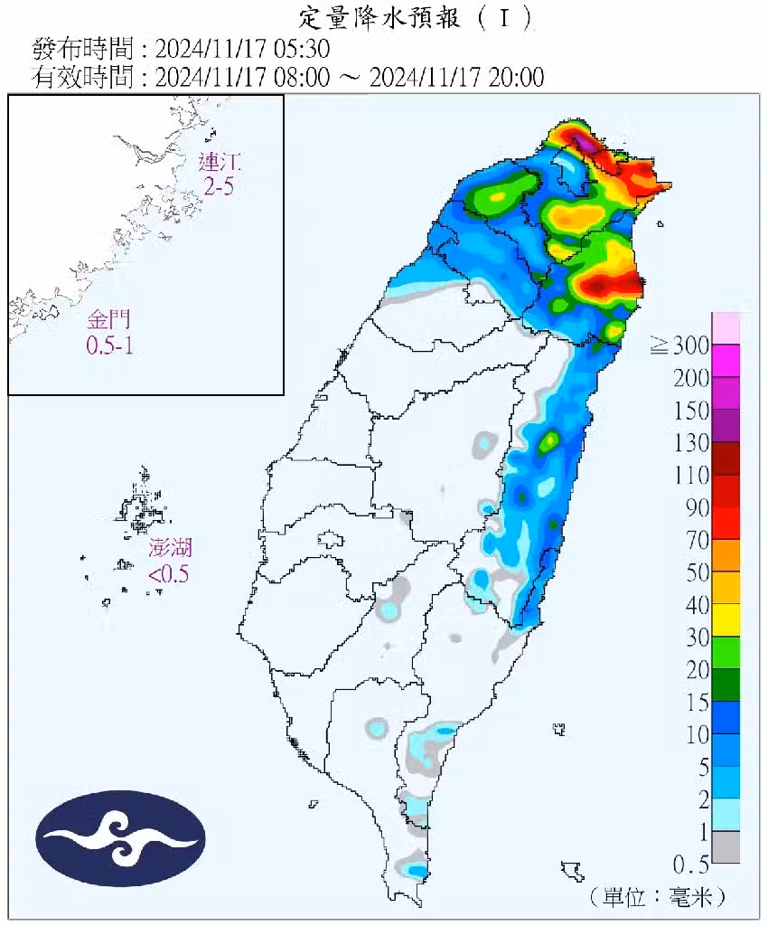 吳聖宇指出,隨著東北季風報到,今天清晨0時起到7時為止,北海岸局部單點的累積雨量已經有將近100毫米,雖然短時間內的雨勢不是特別大,但是長時間的累積下來,雨量仍然會相當多。