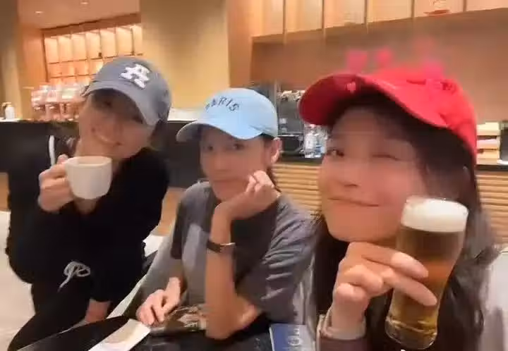 三個人平時可能沒有那麼多的聚會,現在近年關,而且也給自己放假,主要不用帶孩子,更不會接工作電話,所以三姐妹可以徹底放空,充分享受姐妹的密聊時間。