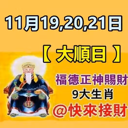 11月19,20,21大順日,福德正神賜財,九大生肖請接財