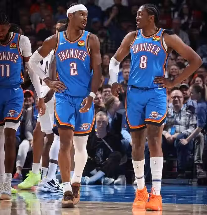 雷霆的最大問題就是沒有一個中鋒,1米98的杰倫帶領4個後衛打迷你陣容,全場小陣容是非常考驗專注力與紀律性的,當對手可以肆無忌憚地在攻防兩端統治籃下時,比賽會越大越累,同時增加了雷霆傷病的風險。