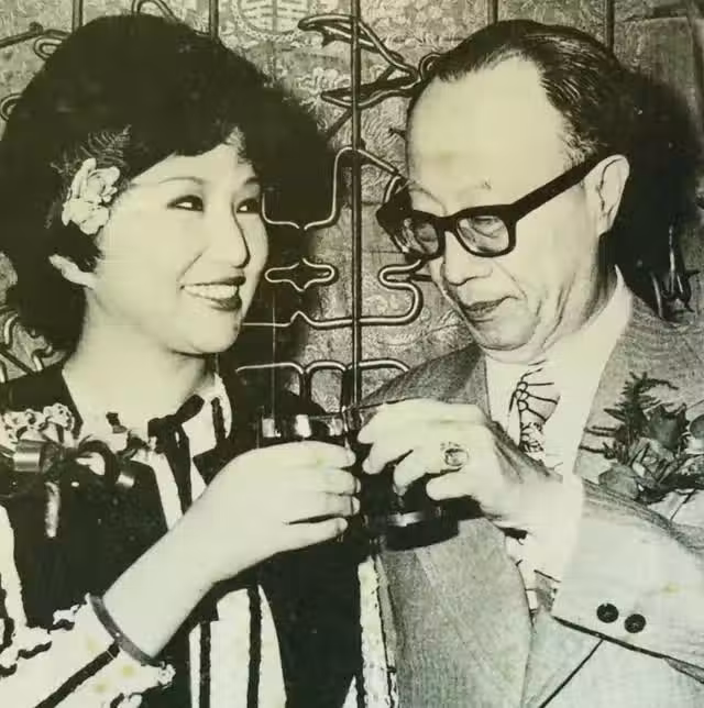 這兩位婚禮新人的身份可不簡單,男方是已經72歲的文學大師梁實秋,女方,則是台灣著名的女明星,44歲的韓菁清。