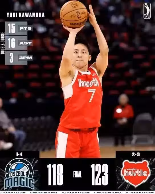 此役河村勇輝發揮驚艷,狂送16助的同時,並且命中3記三分球貢獻15分(投籃12中4)。