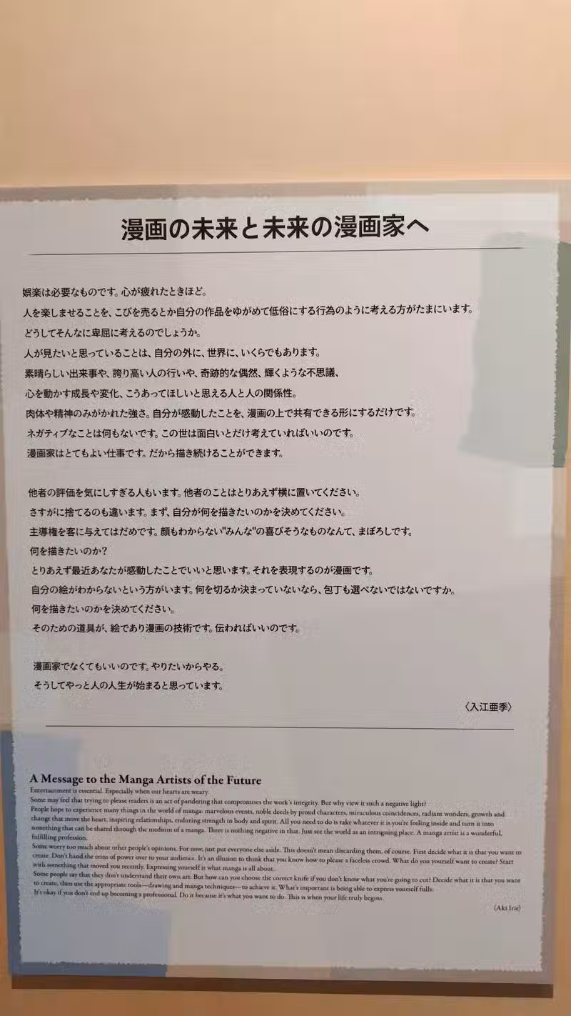 這篇文章的內容主要是講述入江老師對於「畫漫畫」這件事情的本質的看法。全文內容如下:
