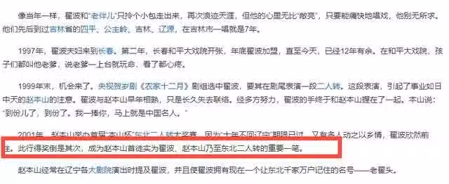 01年,趙本山舉辦「本山杯」東北二人轉大獎賽,因「十年不回遼寧」期限已過,翟波欣然前往,最後他成為趙本山首徒,這也促使其在《劉老根》中飾演角色,並將「老翟頭」演活了。