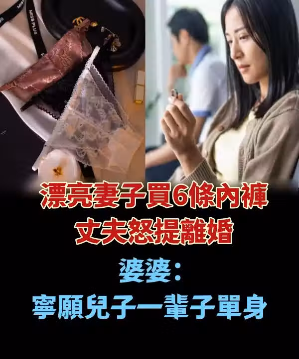 漂亮妻子買6條內褲,丈夫怒提離婚,婆婆:寧願兒子一輩子單身