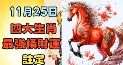 11月25日,四大生肖最強橫財運,註定中彩票頭獎,橫財滾滾來! 今天是11月25日,財神攜福而來,天降橫財星,四大生肖迎來年度最強橫財運,註定贏得人生巔峰!屬豬、屬馬、屬猴、屬牛的朋友們,準備好數錢數到手軟吧,因為這一天不僅是財運高漲的頂點,更是您一夜暴富的最佳契機!無論是隨手買的彩票還是偶然的抽獎機會,都有可能成為您打開橫財大門的金鑰匙。 財源滾滾,幸運爆棚,四大生肖註定迎來屬於自己的財富奇蹟!