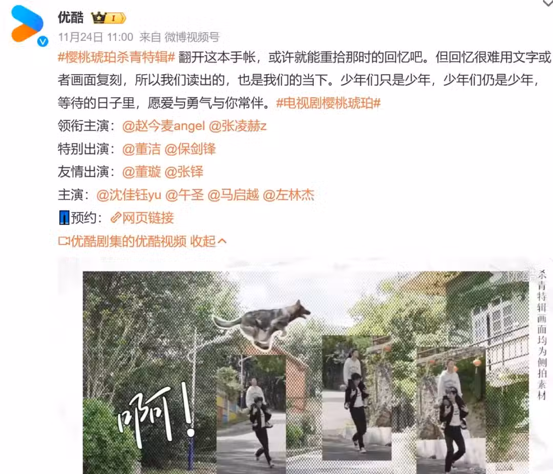 《櫻桃琥珀》講述了在林海風(保劍鋒飾)與趙盛娟(董潔飾)呵護中長大的林其樂(趙今麥飾)與轉校生蔣嶠西(張凌赫飾)成為鄰居。