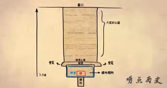 婦好墓縱深7.5米,規模介於中大型墓葬之間,是一座非常典型的商代中晚期貴族墓。