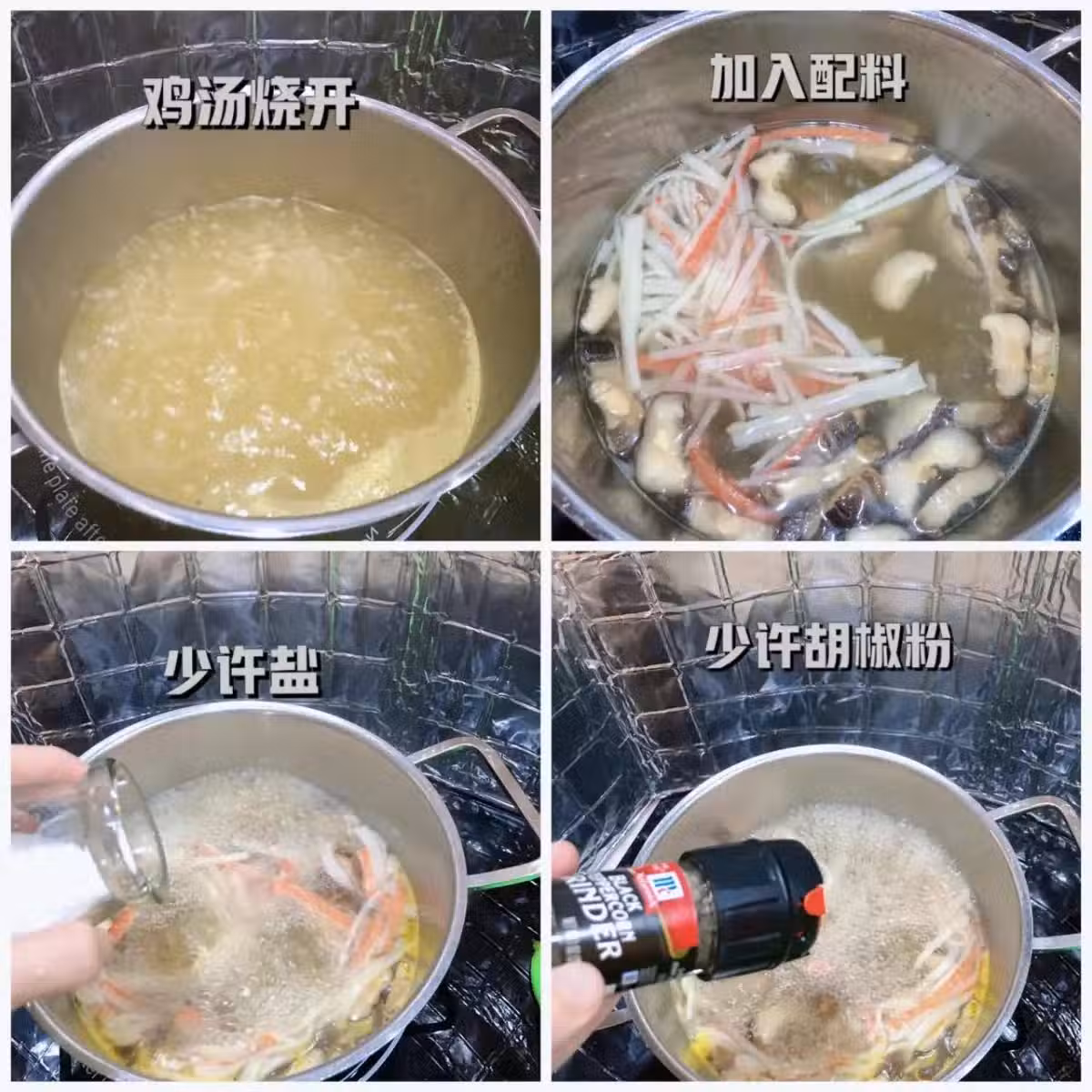 3)薯粉加水,倒入鍋中勾芡。可以根據自己喜好的粘稠程度。