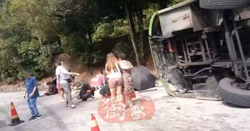 根據ETtoday報導,巴士在下山路段翻覆,一些傷者自行逃出車外,或蹲或躺在路邊等待救援。
