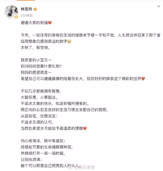 50歲的林志玲十分感性,不少網友表示被她的文字感動到,如果配上她那溫柔的娃娃音,相信更能打動人,就在50歲生日的前夕,林志玲還做了一件大事,回顧自己10年以來做的慈善。