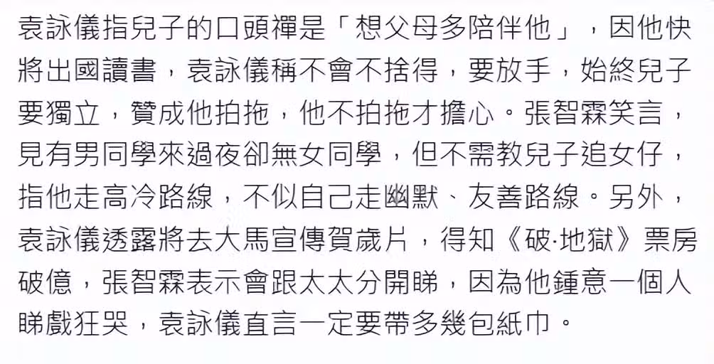張智霖吐槽18歲兒子帶男同學回家過夜,擔心兒子不拍拖催他找女友