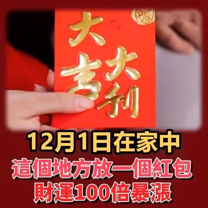風水師偷偷透露:12月1日在家中這個地方,放一個紅包,竟能讓財運100倍暴漲,好運一路旺到年底~