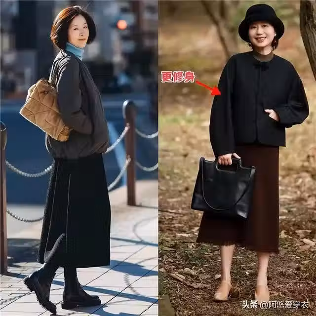 中老年女人穿裙子時,儘量不要配大衣、羽絨服,換成這幾種更洋氣