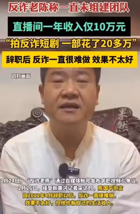 辭去公職當網紅,一晚賺100多萬,反詐老陳後悔:看不起現在自己