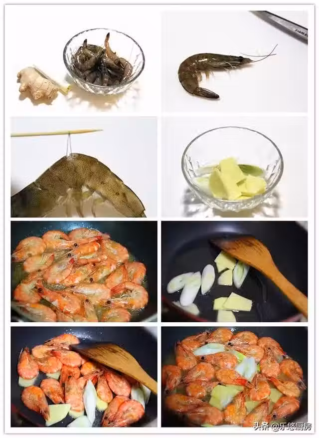 第七步:將蝦放入鍋中。然後放入2勺料酒、1勺鹽、2勺糖、1勺生抽翻炒均勻。
