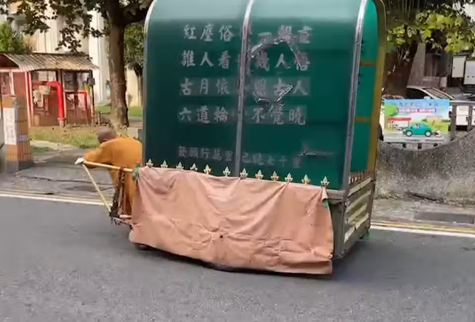 為亡父盡孝!屏東驚見苦行僧「拉棺材車跪行萬里」 希望警戒世人「懺悔23年準備休息」